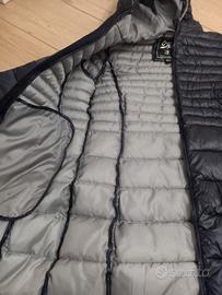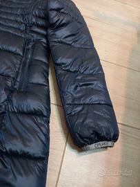 giacca trapuntata donna blu scuro con cerniera e cappuccio due tasche con cerniera usata pochissimo nessun difetto