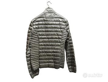 Giubbino in vero piumino d'oca da donna di marca Ciesse Piumini, color argento, pari al nuovo, ultraleggero, 800 Fill Power. Tre tasche interne, due tasche esterne. Taglia 44, vestibilità slim.