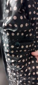 Piumino marchio Dorabella, taglia 49, color nero con fodera interna a pois. Zip doppia, taschina interna e due tasche esterne.