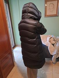 piumino donna colore blu fino ginocchio con zip cappuccio