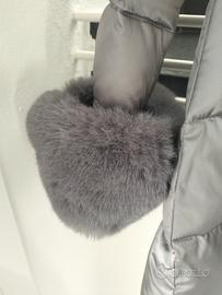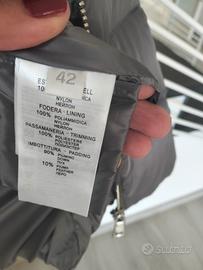 Bellissimo piumino colore grigio SNOW SECRET tg.42. Leggermente svasato con polsi e cappuccio rifiniti in pelliccia ecologica tono su tono. Lampo doppio cursore, tasche con lampo esterna più interna sotto la patta. lunghezza davanti cm.76 dietro cm.85