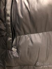 Piumino donna lungo taglia L comoda veste da una 48- una 50 abbondante … cappuccio non rimovibile, chiusura a zip coperta dai bottoni … e elastici ai polsi e sotto per stringerlo