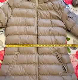 Come da foto vendo in eccellente condizione piumino da donna lungo di colore beige, trapuntato con ampio collo staccabile in pelliccia sintetica