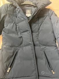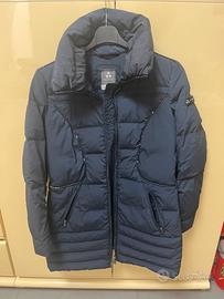 Piumino da donna, colore blu, taglia 44, marca Peuterey originale, imbottitura piume d’oca, ottime confizioni eccetto lievi screpolature sui profili in pelle (come da foto). Spedizione a carico dell’acquirente. No reso: visto, controllato, piaciuto e acquistato. No perditempo.