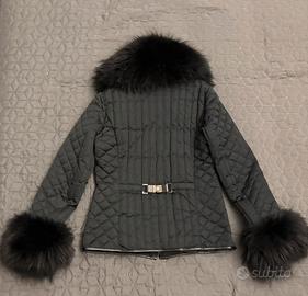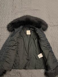 Piumino slim Moncler, come nuovo. Vera Pelliccia al collo e ai manicotti. Colore nero taglia 44.