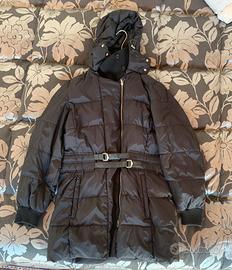 Piumino donna piuma d oca con cintura ai fianchi, polsi e collo in maglina, marca bon street taglia 48