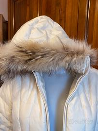 Piumino lungo da donna Sergio Tacchini, un capo caldo e alla moda. - Imbottitura in piuma d'oca. - Cappuccio con pelliccia. - Chiusura con zip. lung cm 90 spalle cm 41 la cerniera è da revisionare