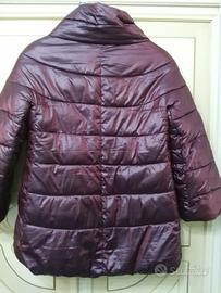 Vendo piumino donna tg. 44, imbottitura poliestere colore bordeaux cangiante, reversibile a fantasia floreale. Manica tipo tre quarti e tasche entrambi i lati.