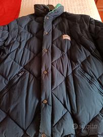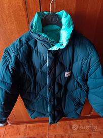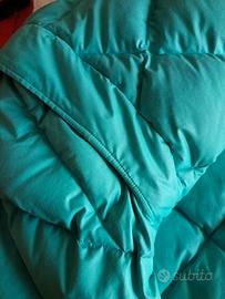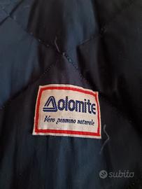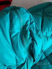 Piumino donna double face Dolomite in piuma d'oca naturale colore turchese e blu scuro. Chiusura con zip e bottoni. Cappuccio richiuso nel collo, maniche staccabili con polsino in maglia al fondo manica. Usato due volte. Adatto per la montagna. È una S ma veste anche M. Misure ampiezza spalle cm 46, sotto ascelle cm 58,lunghezza cm 75, lunghezza manica cm 60. Ottime condizioni