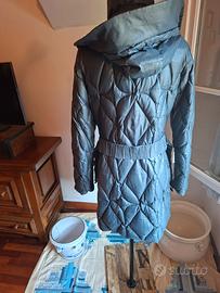 piumino donna brand Trussardi jeans originale tg 44 italiana (chiedere le misure precise) vestibilità slim con cappuccio rimovibile e cintura in vita, si può allacciare sia con bottoni sia con cerniera, imbottitura in vera piuma