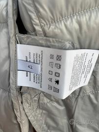 Piumino da donna Trussardi come nuovo, di colore grigio argento imbottitura in poliestere con cerniera centrale e alle tasche dorata taglia 42