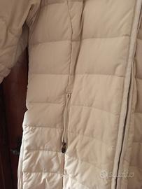 piumino donna lungo, con cappuccio con pelo, due tasche