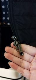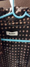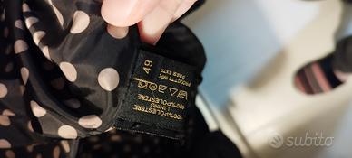 Piumino marchio Dorabella, taglia 49, color nero con fodera interna a pois. Zip doppia, taschina interna e due tasche esterne.