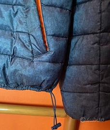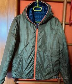 Vendo piumino Double Face Blu/reversibile Verde Salvia comodo, caldo, pratico e leggero, per uomo/donna, cerniera su tutta la lunghezza colore arancio in contrasto, cappuccio, 2 comode tasche da ambedue i colori.