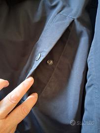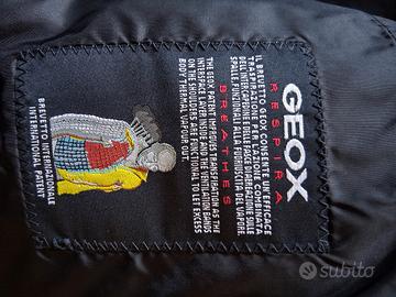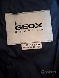 Bellissimo piumino Geox Respira; lungo a tre quarti; tg.56, colore nero, doppia chiusura, sia con bottoni clips che con cerniera. Piumino interno con cerniera, staccabile. Imbottitura in vera piuma. Accessoriato con 6 tasche esterne ed una interna. Con cappuccio che si chiude a collo. Molto caldo. Perfetto.