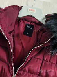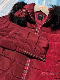 Piumino imbottito marchio Calliope color bordeaux (vinaccia), con una chiusura con zip frontale argentata, tasche laterali e un cappuccio con bordo in eco pelliccia sintetica nera. Questo tipo di giacca puffer presenta una trapuntatura orizzontale classica ed è pensato per la stagione invernale. Dimensioni: Spalle 40 cm Larghezza torace 50 cm Vita 43 cm Lunghezza manica 62 cm