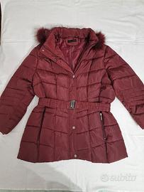Questo è un elegante e caldo piumino invernale della marca Elisa Rosa, perfetto per affrontare il freddo con stile. Il colore è un bellissimo tono di bordeaux scuro, molto versatile e raffinato. Caratteristiche Principali: Brand: Elisa Rosa Taglia: 54 (Vestibilità comoda) Colore: Bordeaux scuro Design: Modello trapuntato a fasce, che slancia la figura. Cappuccio: Dotato di un morbido bordo in ecopelliccia tono su tono Cintura: Presenta una cintura elasticizzata con fibbia in metallo in vita per evidenziare la silhouette e regolare la vestibilità. Chiusura: Doppia chiusura con zip e bottoni a pressione. Dettagli: Tasche laterali con zip.