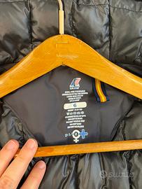 Vendo piumino K-Way originale modello Jacques Thermo, colore grigio scuro/ antracite. Si tratta della versione invernale con imbottitura pesante, ideale per le basse temperature. Caratteristiche principali: • Imbottitura: Vera piuma d'anatra (90% piumino, 10% piuma) per il massimo calore. • Materiale: Tessuto tecnico esterno resistente all'acqua e al vento. • Dettagli: Cappuccio fisso regolabile, iconica zip K-Way a contrasto, tasche laterali con chiusura a zip. • Condizioni: Capo tenuto con cura, logo perfetto e zip perfettamente funzionante. Taglia 6