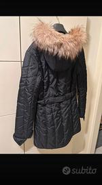 Piumino Kalvin klein tenuto perfettamente . Dotato di cappuccio zip e tasche basse , in vita cintura con fibbia , veste 40/42