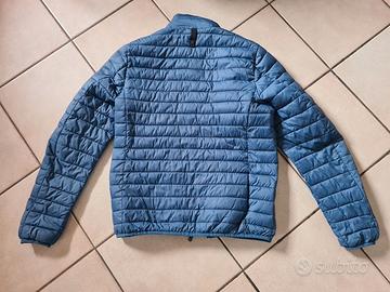 colore blu (come da foto), taglia S, ottime condizioni ma con un piccolo foro sul retro nel mezzo visibile nella foto da dietro e nella foto del particolare