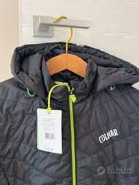 Vendo piumino leggero (modello 100 grammi) della Colmar, originale e nuovo con cartellino. Il piumino è di colore nero con un particolare contrasto di zip in verde fluo. È una S ma secondo me veste anche XS. Vendo perche mi sta piccolo.