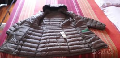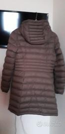 Benetton, color tortora taglia 38, capuccio non staccabile. Usato pochissimo. Adatto alla mezza stagione perché leggerino. Lungo sopra il ginocchio. Imbottitura in piuma. Possibilità di consegna a mano a rovigo o nelle vicinanze.