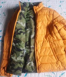 Piumino leggero Gap per ragazzi, reversibile mimetico e giallo con cerniera, senza cappuccio.