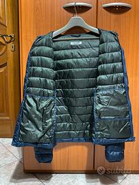 Piumino Leggero X-Cape, colore blu navy con interno verde scuro, usato una sola volta e in condizioni pari al nuovo.