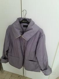È un giubbino di colore lilla chiaro (purtroppo in foto sembra più scuro) è molto morbido, ed ha un collo particolare con chiusura a doppio cursore come da foto, è lungo dalle spalle ai fianchi cm.64, torace cm 64,bacino cm 64 ( è un modello dritto),le maniche hanno il risvolto, le tasche sono con cerniera, veste la M, essendo di Luisa Spagnoli ha una vestibilità dalla tg.44 alla tg.48.