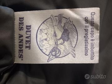 Piumino lungo Ciesse. Colore tortora. Taglia 54 vestibilità ampia. Imbottitura DUVES DES ANDES. Leggero e caldissimo. Fodera interna. Cappuccio imbottito staccabile. Ottime condizioni.
