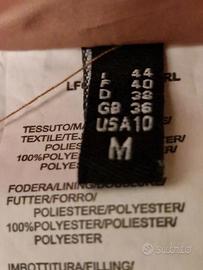 Piumino lungo da donna della nota marca Montereggi Point. Capo è di vivace e lucente color rosso. Il design presenta una trapuntatura orizzontale classica ed elegante, con dettagli raffinati come l'interno del colletto e dei polsini in un elegante color cipria/beige satinato. Il piumino è in ottime condizioni generali. Non presenta difetti visibili, macchie o segni di usura significativi. La sua alta qualità è evidente nella lucentezza del tessuto e nella cura dei dettagli. Materiali e Composizione: Imbottitura di alta qualità: 90% Piuma (Duvet) e 10% Piumetta (Feather). Il tessuto esterno e la fodera sono in 100% Poliestere. Guida alle Taglie e Misure: - Italia: 44 - Francia/Spagna (F/E): 40 - Germania (D): 38 - Regno Unito (GB): 36 - USA: 10