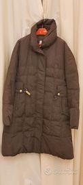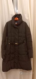 Piumino lungo di colore marrone, con cintura,marca Henry Cotton's,taglia 44.