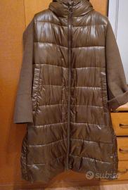 Elegante giubbotto/piumino lungo di Hox, perfetto per l'inverno. Il corpo è realizzato in un nylon lucido color bronzo/marrone, con un'imbottitura che trattiene il calore. Le maniche a contrasto, in un tessuto simile alla lana di colore marrone più scuro e dal taglio dritto, aggiungono un tocco di stile unico.