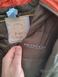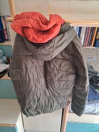 Vendo piumino lungo imbottito Smithy's di colore verde con doppio cappuccio. Quello arancione, il più interno, è removibile con zip.