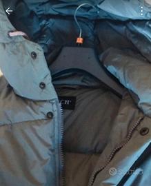 piumino come nuovo lungo da uomo colore verde bottiglia taglia XL con tasche grandi sul davanti