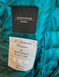 Piumino donna originali Max Mara weekend lungo. Condizioni perfette. Colore azzurro -verde con doppio cursore. Taglia M.