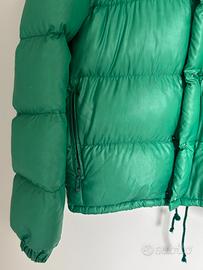 Capospalla realizzato nella rara taglia 0 (XS - S) la più piccola realizzata e color verde smeraldo. Capospalla in nylon imbottito piumino, con tasche e maniche staccabili tramite cerniera. In ottime condizioni generali nonostante la sua etá, senza buchi strappi o macchie. 80s ski wear retro ski outfit neon ski suit color block jacket padded ski jacket insulated pants ski bibs salopette fleece pullover thermal base layer waterproof jacket ski goggles mirrored goggles beanie wool hat ski gloves snow boots après-ski style bright colorway geometric pattern retro snowwear vintage mountain gear alpine outfit slope style nostalgic winterwear