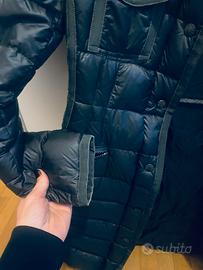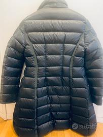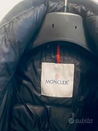 Piumino lungo a ginocchio nero, moncler. Usato pochissimo e tenuto in ottime condizioni. Coulisse interna, cerniera e bottoni, taschino sul davanti.