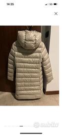 Piumino lungo color avorio con cappuccio staccabile,gruccia originale e bottoni di ricambio.Taglia 12anni/XS.