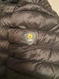 Piumino leggero 100grammi nero con cappuccio realizzato in nylon leggero, offre protezione nelle mezze stagioni e leggerezza quotidiana.