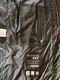 Piumino nero con cappuccio Bosideng, misura M. Cuciture nastrate, tiranti zip neri e rossi siglati. Chiusura con full zip, 4 tasche sul davanti e 3 interne, di cui una per smartphone. Alle maniche inserti rettangolari e tasca sul dietro 50%Cotone 50%Poliestere. Imbottitura vera piuma 90/10, fodera 100% nylon. Patch logo sulla manica sinistra. Lunghezza cm. 65; lunghezza maniche cm. 65; spalle cm. 47; torace cm. 58. Composizione 100%Poliestere. Si segnalano segni di usura e un mini strappo: vedere foto!!