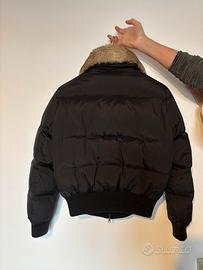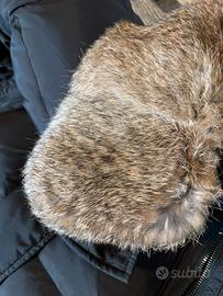 Piumino nero imbottito piume d oca Taglia L Colletto pelliccia removibile con cerniera Come nuovo Chiusura zip
