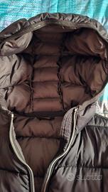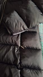 Piumino invernale, nero, lungo, chiusura con zip doppio cursore, tasche a filetto con zip, cappuccio fisso, taglia xs.