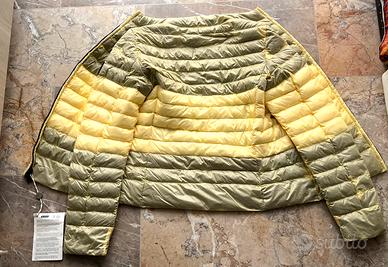 PIUMINO DONNA LEGGERO , NUOVO CON CARTELLINO. MARCA “ DEKKER “ tg 44. CON “ ARMATURA RIPSTOP, RESISTENTE ALLO STRAPPO TASCHE LATERALI, EATER REPELLENT. COLOR GIALLO PASTELLO E VERDE SALVIA a contrasto. MISURE. : AMPIEZZA SPALLE 40cm. LUNGHEZZA 60cm
