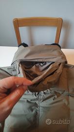 Tasche frontali grandi con patta + taschino verticale con zip sul petto.