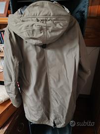 Originale al 100%, ottime condizioni, veste una taglia 46 (veste una M comoda). Colore oliva, in piuma d'oca. Cordino elastico per stringerlo in fondo (parte posteriore), fascia per stringere il cappuccio. Bellissimo e caldissimo, vendo solamente per cambio taglia. Per altre informazioni o foto contattatemi.