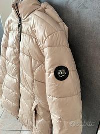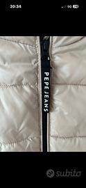 Piumino pepe jeans esternamente beige ed internamente nero con cappuccio rimovibile all’occorrenza. Materiale poliestere, taglia XS