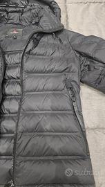 Piumino Peuterey nero. indossato solo una volta. Con cappuccio, zip sulle tasche, leggermente sfiancato. In vera piuma, caldo. confortevole.