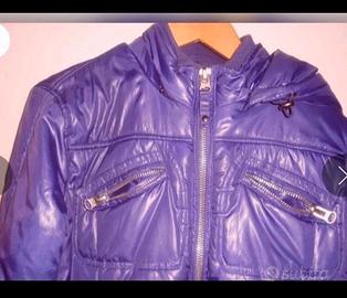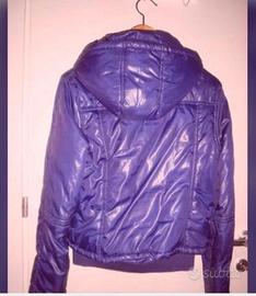 Giubbotto /piuminoviola con bordo e polsi in lana , cappuccio staccabile , unisex tg L
