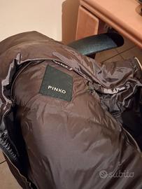 Piumino Pinko. Taglia 44. Colore marrone. Buone condizioni , a parte nella zona lucida piccole macchiette causate dall'asciiugatura delle piume. Cappuccio in pelliccia lucidissima. Molto caldo